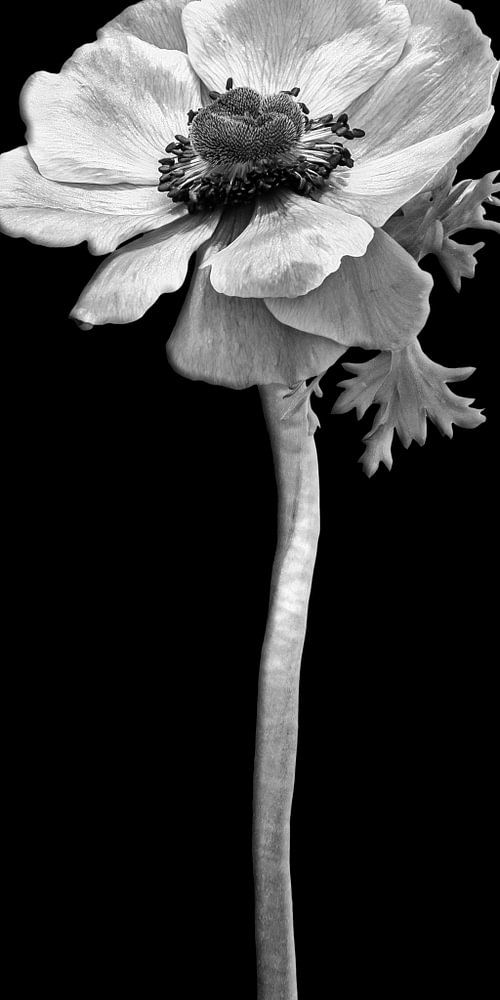 The anemone coronaria is an attractive spring bloomer and true color sensation. Here to enjoy in a vibrant purple. Exceptionally decorative image in a minimalist monochrome context. Impressive image in a dark design.