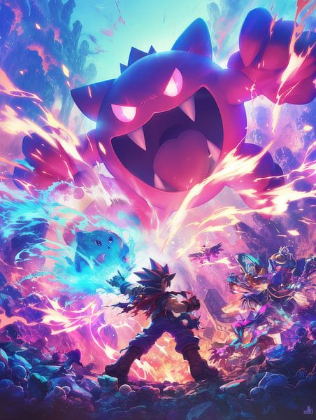 Buy this digital art artwork Anime Creatures and Legendary Heroes" by mhocidark mo as a reproduction on canvas, ArtFrame, poster and wallpaper, printed on demand in high quality.