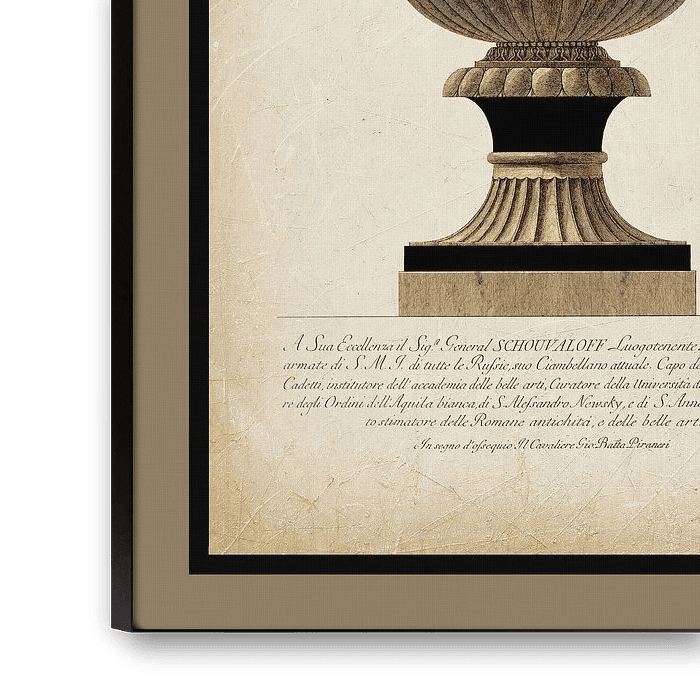 A coloured black-and-white engraving by Italian artist 'Giovanni Battista Piranesi'.