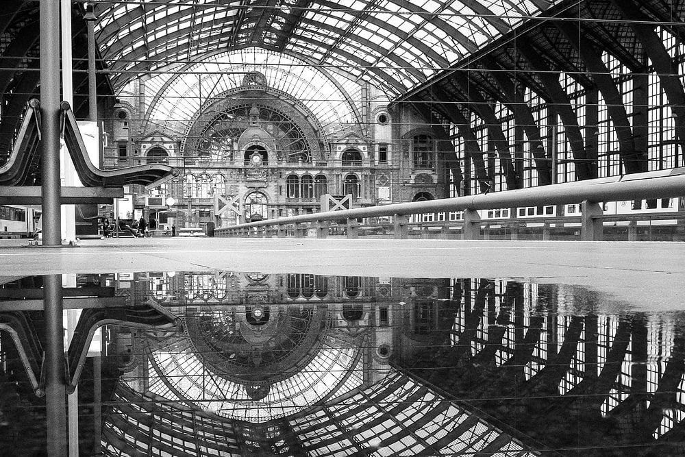 The first Antwerp station was the terminus of the Mechelen-Antwerp railroad line opened on June 3, 1836. It was then plainly called Antwerp station . The area around the station was little built-up at the time, and the city's Spanish ramparts were also still intact. When in 1840 the railroad was extended through the Rijnpoort to the station Antwerpen-Dokken and -Stapelplaatsen on the Oude Leeuwenrui, people began to use the name Antwerpen (Borgerhout) to avoid confusion. The original station building was wooden and was replaced by a new and larger building on the occasion of the opening of the new international connection to the Netherlands in 1854-1855.
