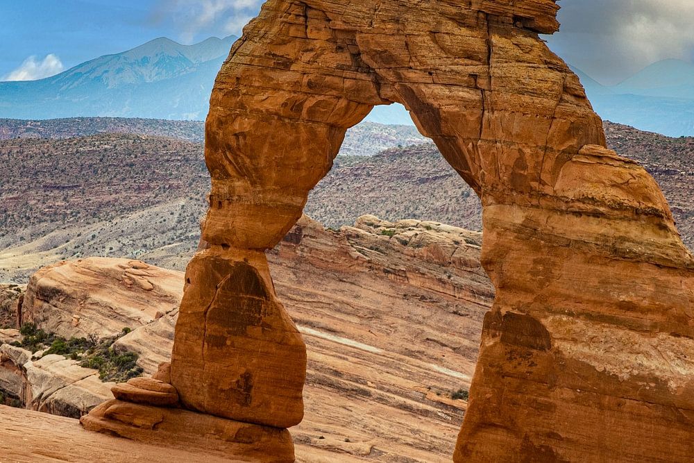 Arches National Park is a fairly small national park near Moab in the eastern part of the U.S. state of Utah. There are several hikes (trails) in the park. There is also a visitor center. Arches National Park is famous for its many impressive rock formations and balancing rocks such as the Courthouse Towers, Windows Section, Fiery Furnace, Devils Garden, Klondike Bluffs and the Balanced Rock. There are more than 2,000 documented natural bridges (arches), including Landscape Arch, Double Arch, Double O Arch and Delicate Arch. The smallest arches have an opening of barely one meter, while the distance between the supports of the largest arch (the Landscape Arch) is 88.4 meters. In 1991, a piece of the Landscape Arch broke off, measuring 20m by 3.66m by 1.33m. A witness made a video of this. Now it is not allowed to walk under or on the arch. In 2005, the Wall Arch collapsed. In the north of the park is an area called the Devil's Garden. Here is an 11-kilometer-long hiking trail along which a number of arches can be reached.