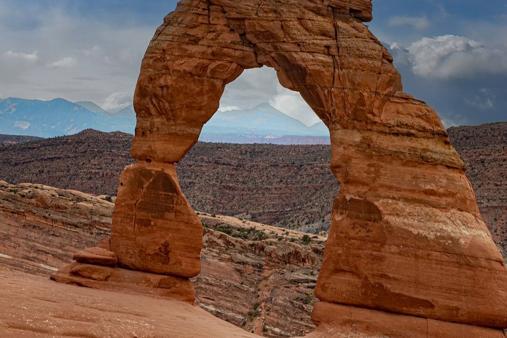Arches National Park is a fairly small national park near Moab in the eastern part of the U.S. state of Utah. There are several hikes (trails) in the park. There is also a visitor center. Arches National Park is famous for its many impressive rock formations and balancing rocks such as the Courthouse Towers, Windows Section, Fiery Furnace, Devils Garden, Klondike Bluffs and the Balanced Rock. There are more than 2,000 documented natural bridges (arches), including Landscape Arch, Double Arch, Double O Arch and Delicate Arch. The smallest arches have an opening of barely one meter, while the distance between the supports of the largest arch (the Landscape Arch) is 88.4 meters. In 1991, a piece of the Landscape Arch broke off, measuring 20m by 3.66m by 1.33m. A witness made a video of this. Now it is not allowed to walk under or on the arch. In 2005, the Wall Arch collapsed. In the north of the park is an area called the Devil's Garden. Here is an 11-kilometer-long hiking trail along which a number of arches can be reached.