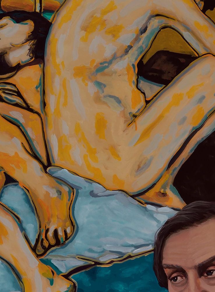 Realistic acrylic painting of painter Arie Kater, painted by the Dutch fine artist Paul Meijering - the original painting is 120 x 90 cm and part of a permanent collection.