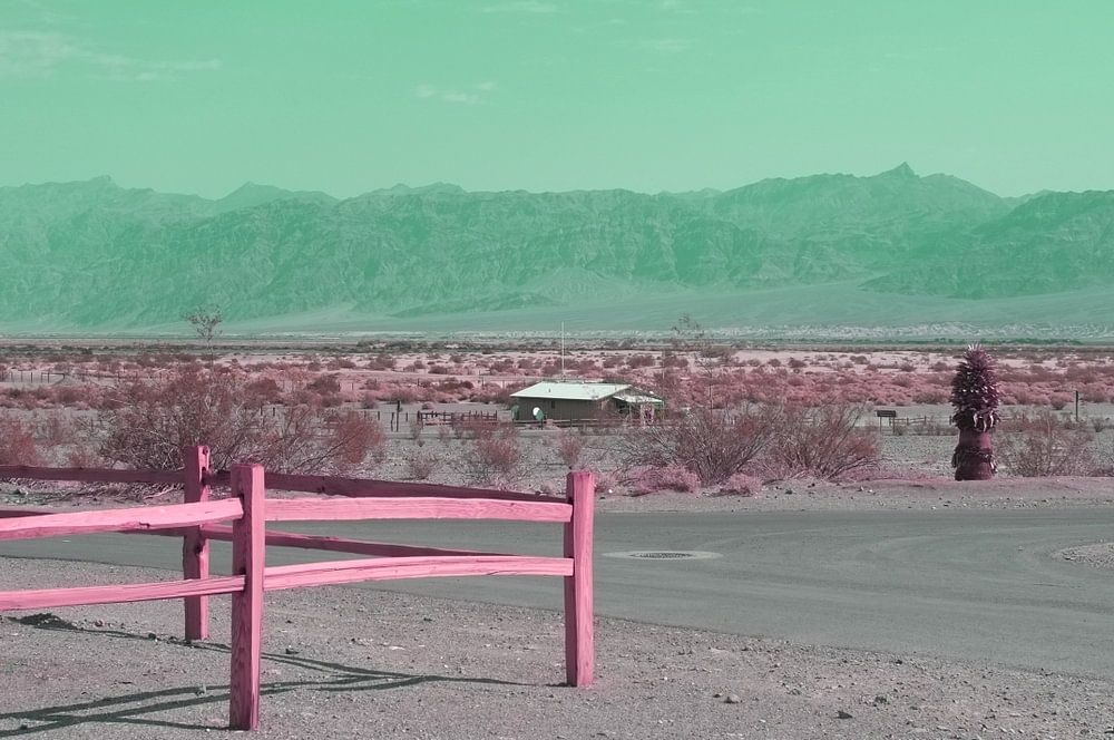 This photograph from the California dream series is taken in the Arizona desert. Barriers on a crossing on a sunny day. What are they for in the middle of the desert? The pink and turquoise colours are chosen to reflect the mythical dimension of California. For this series, I used the beauty of the colours of Fujifilm films. You can see all my collections on www.luciboreali.com