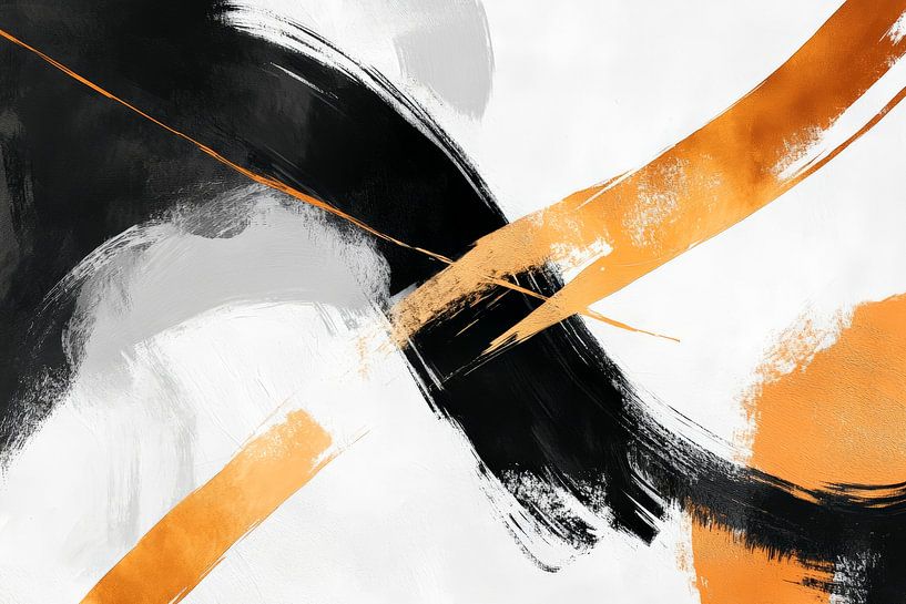 Dynamic contrasts in black, radiant gold and soft white merge into a harmonious composition that is both powerful and elegant. This abstract interpretation of movement and energy brings a breath of fresh air to any living room and creates stylish accents that are both modern and timeless. Perfect for creative retreats!