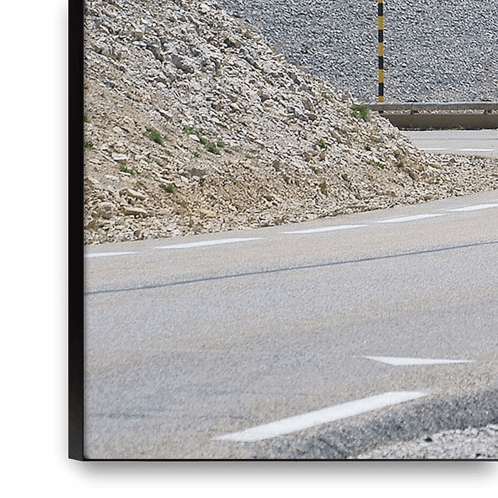 Ascent by cyclist of Mont Ventoux, the barren mountain in the French Vaucluse with steep, barren roads.