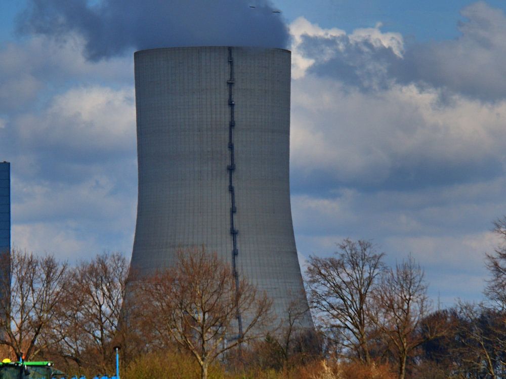 Farmer at work in Datteln. In the background the coal-fired power plant Datteln 4