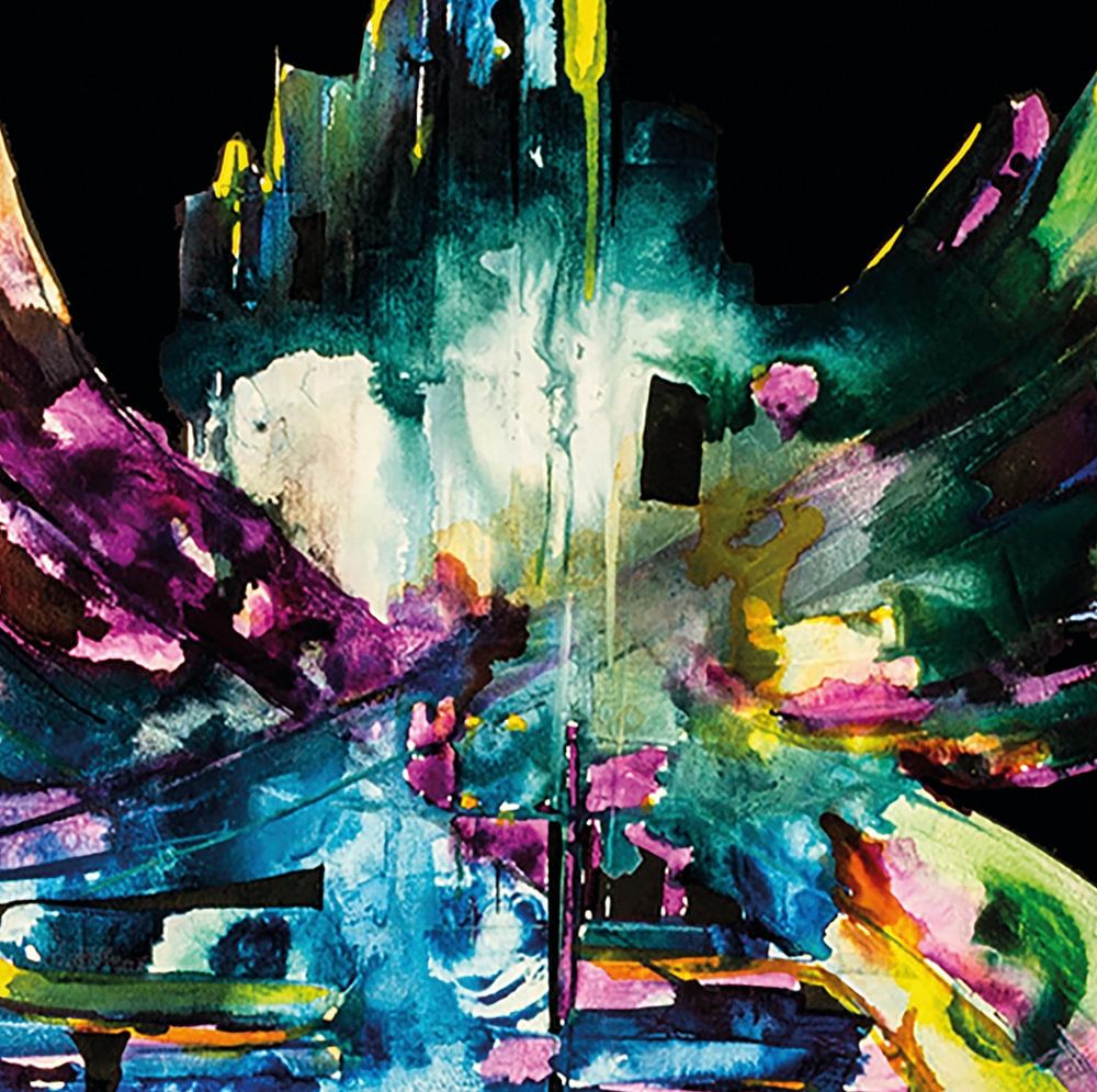 Bw. Nettle on stretcher primed with black gesso, colored ink, white underpainting and acrylic varnish
