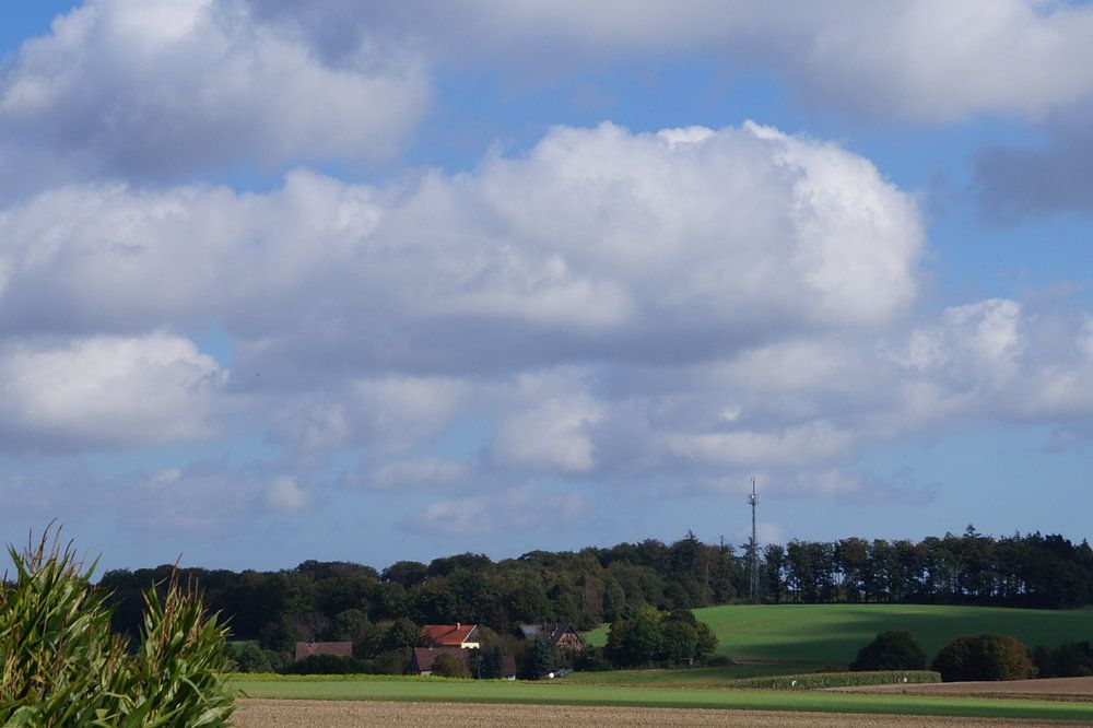 Sonniger Tag auf dem Lande mit Wolken am Himmel.