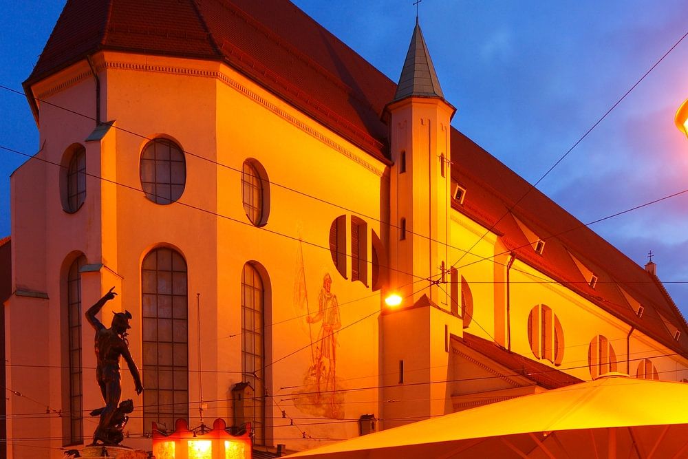Church of St Moritz at dusk, Old Town, Augsburg, Swabia, Bavaria, Germany, Europe