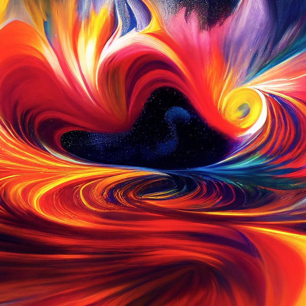 As you stare at the artwork, you feel as though you are being transported to the very heart of the universe, where cosmic forces collide and coalesce. The intricate interweaving of these colors creates a sense of movement and dynamism, as though the painting itself is alive and constantly shifting.