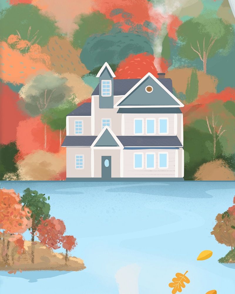 Buy this landscape artwork Autumn Cottage by Petra Lizde on canvas, ArtFrame, poster and wallpaper, printed on demand in high quality.