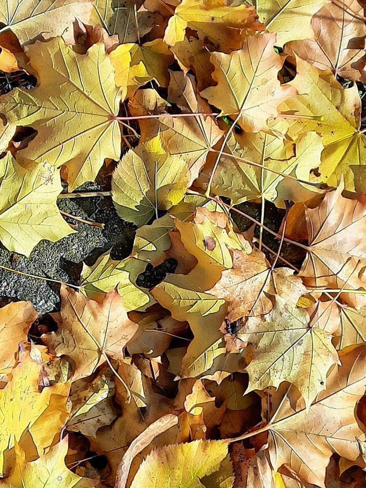 A carpet of golden leaves, beautiful fall color that crunches when you walk on it. his is a whole mixture of leaves, predominantly maple. Jut glorious colours.