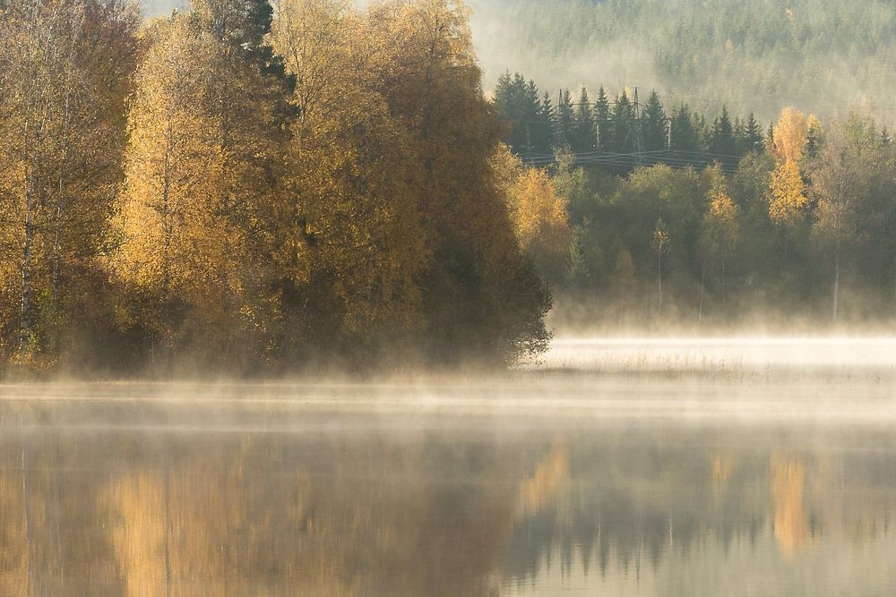 Deciduous trees turn yellow, orange and the whole landscape is bathed in colourful splendour as the morning mist slowly disappears for yet another sunny day. Good morning!
