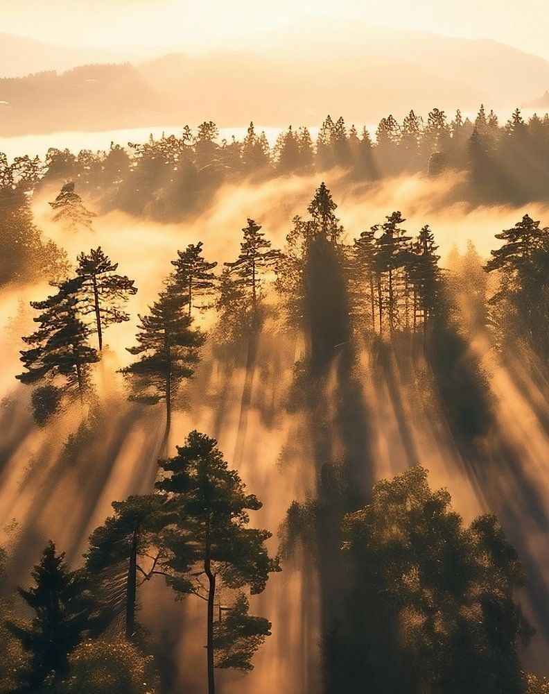 Buy this landscape artwork Autumn forest at sunrise by fernlichtsicht on canvas, ArtFrame, poster and wallpaper, printed on demand in high quality.