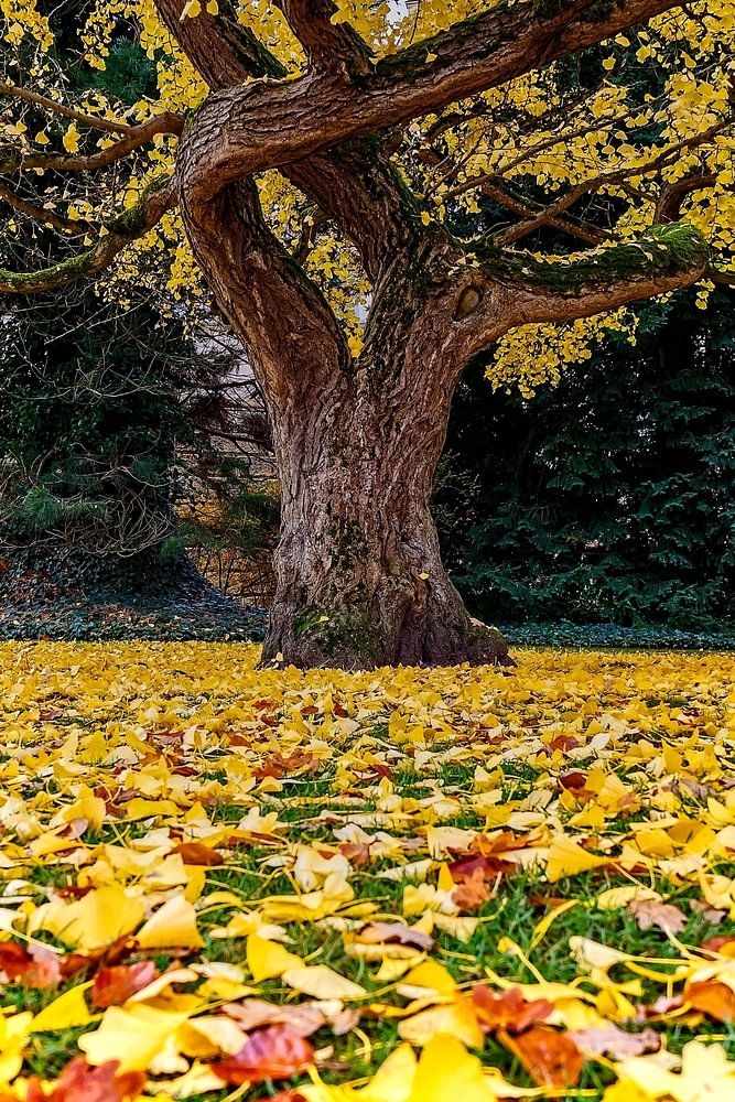 An autumnal ginkgo, few leaves in the crown, many leaves on the ground. It's mid-November, the leaves are falling and lie in rich colours around the old giant. The Ginkgo Biloba tree, planted around 1860, stands in Schwerin Castle Gardens. At 165 years old, it is an impressive sight. It is a well-known feature of the garden and a sight that can be experienced at any time of year. The ginkgo is thought to be the oldest tree in the world. It may therefore be the ancestor of all trees. This also explains why the "Tree of the Year" board of trustees honoured the ginkgo as the "Tree of the Millennium" at the turn of the millennium. Botanists assume that the ginkgo is already over 300 million years old. Ginkgo also has many different meanings: it symbolises hope, resilience and peace, especially due to its ability to survive after the US atomic bomb was dropped on Hiroshima. Culturally, it symbolises longevity, friendship, love and happiness in China and Japan. In traditional medicine, it is used for its circulation-promoting properties and is said to support brain function. In China, the dioeciousness of the tree and the divided leaf are also seen as a symbol of the balance of the Chinese philosophy of 'yin and yang', which represents male and female principles, day and night, life and death.