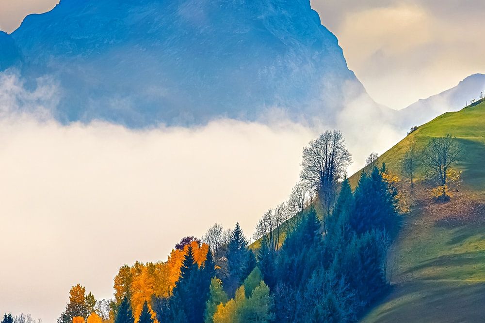 Autumn and autumn colors in Colle Santa Lucia, a village and municipality in the Italian province of Belluno, in the Veneto region. The picturesque village lies southwest of Selva di Cadore, which is in Trentino-South Tyrol.