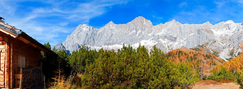 Buy the photo Autumn panorama on the Dachstein by Christa Kramer on canvas, ArtFrame, poster and wallpaper, printed on demand in high quality.