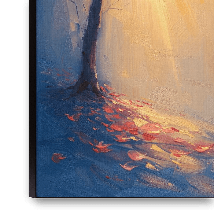 Here, where the earth gently embraces the falling leaves, the tree seems to mourn the arrival of autumn, a season of beauty and farewell that recalls Demeter's love for her daughter Persephone. The golden glow is a promise of rebirth and infinite cycles.
