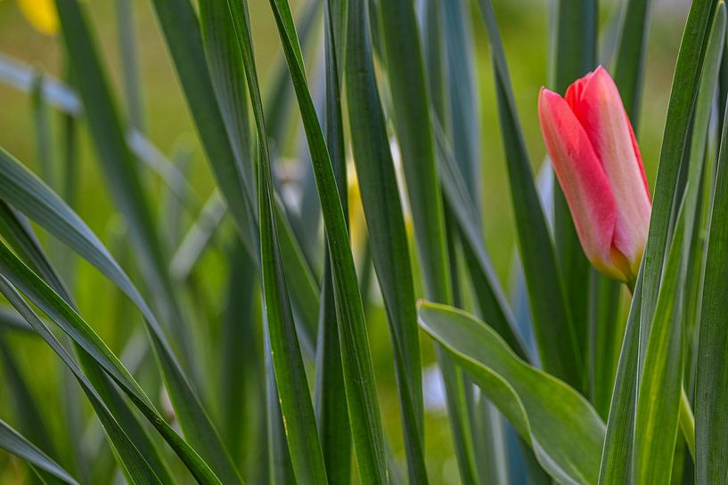 Delicate tulip buds in vibrant red make their way through a dense sea of emerald-green stalks, heralding the awakening of nature with gentle vigour. The interplay between the sharp lines of the leaves and the soft curves of the petals creates a harmonious tension that draws the viewer’s gaze deep into the spring thicket. Whilst one…