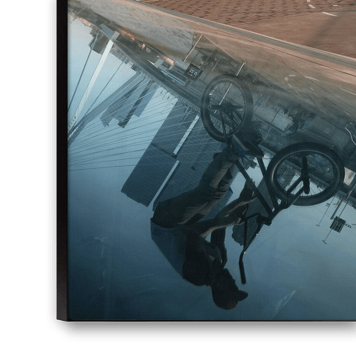 The combination of sports, city and reflections makes this picture perfect to hang in a living room, office, or even an urban café. It is an image that exudes energy while capturing the modern atmosphere of Rotterdam, ideal for lovers of BMX, urban photography or the beautiful city of Rotterdam.