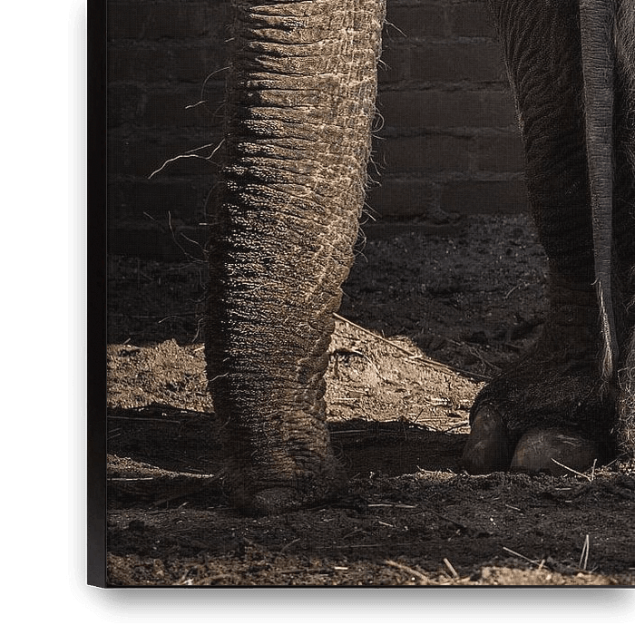This baby elephant is only nine days old, safe between the legs of his mother, he carefully explores the world. It is a beautiful day, the sun is shining and he is standing there in the sun. A wonderful new life, this fragile baby elephant.