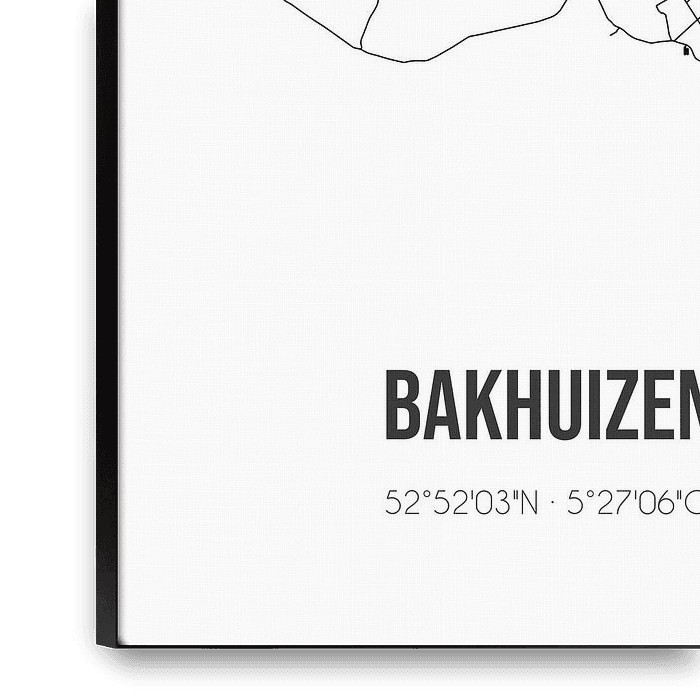 Buy this abstract artwork Bakhuizen (Fryslan) | Map | Black and white by Prints of Place on canvas, ArtFrame, poster and wallpaper, printed on demand in high quality.