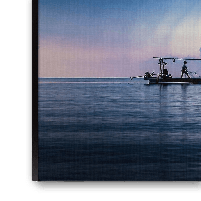 Bali, one of the beautiful islands of Indonesia, the weather is always nice, the food is great, and the people are very amazing. On the sea the fishermen are throwing out their nets on their boat, the fish will be caught again tonight. A heavy rain shower over the sea gives a nice atmosphere to the photo. The sky changes from deep blue to pink due to the setting sun. Bali .... that's just enjoyment!