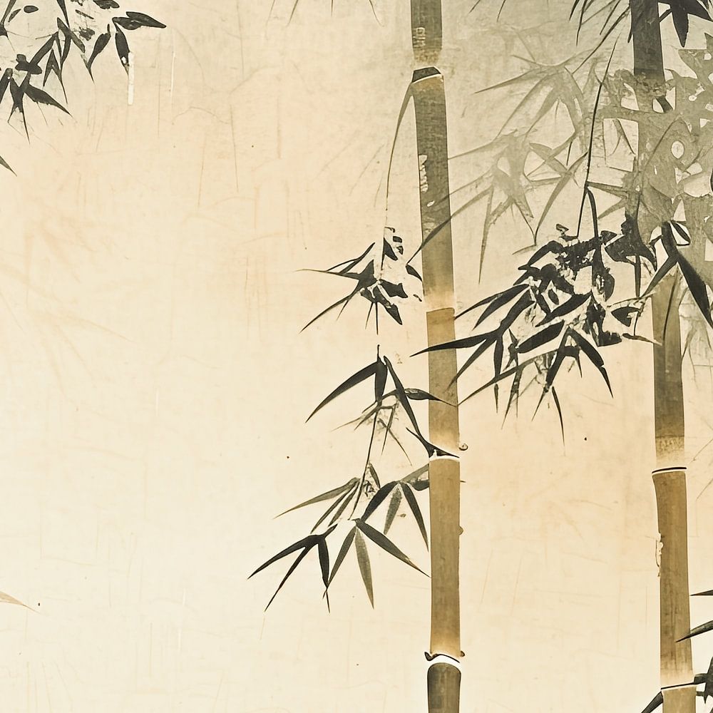 The image appears to have a vintage feel, with a sepia or monochrome colour tone that conveys a sense of nostalgia or historical connection. The trunks of the bamboo are prominently and vertically arranged, and the leaves are subtle but recognisable with their characteristic pointed shape. The overall feeling is one of calm and peaceful simplicity, often associated with traditional East Asian art.
