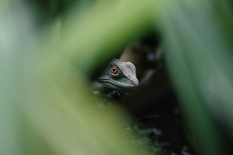 A curious basilisk in Costa Rica.