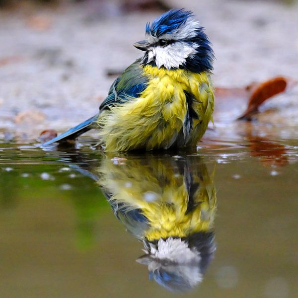 Buy this bird art Bathing blue tit by Sabrina de Vries on canvas, ArtFrame, poster and wallpaper, printed on demand in high quality.