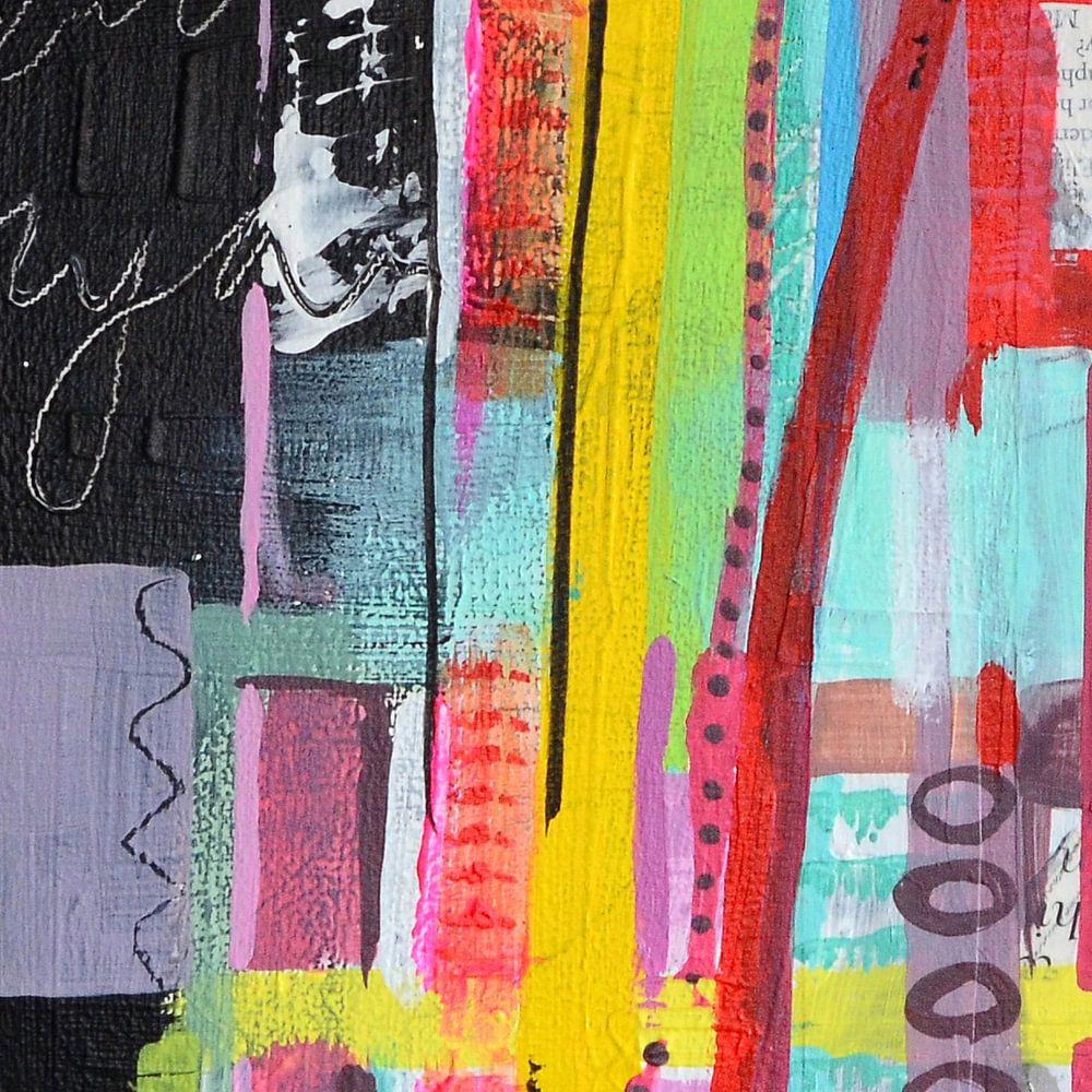 This is a print of a painting of mine. Acrylic and mixed media on canvas. I work layer upon layer with various materials and techniques.