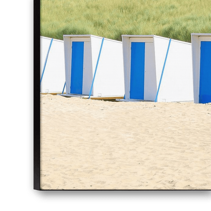Buy the photo Beach houses on the beach in front of sand dunes by Sjoerd van der Wal Photography on canvas, ArtFrame, poster and wallpaper, printed on demand in high quality.
