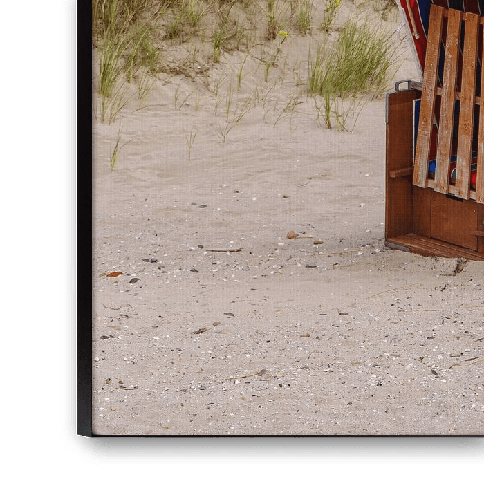 Beach chair on the island of Föhr from which an oystercatcher is just taking off.