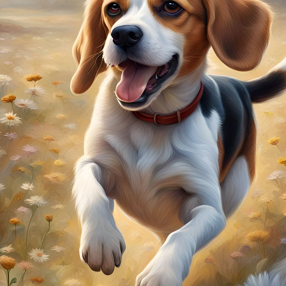 Beagle playing in a Flowerfield by Johannas Art Creations