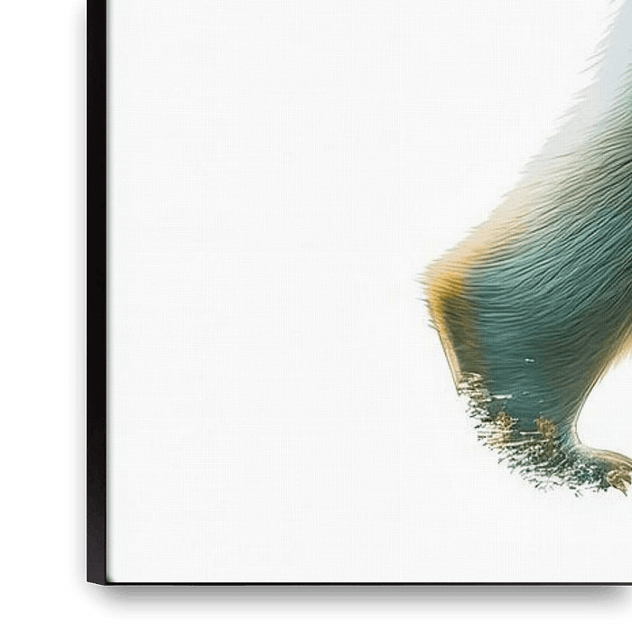 A majestic bear strides through a dreamlike mountain panorama that shimmers in soft colours. The harmonious combination of animal and nature radiates calm and strength. This work of art is ideal for the living room, where it stimulates conversation and creates an atmosphere of closeness to nature.