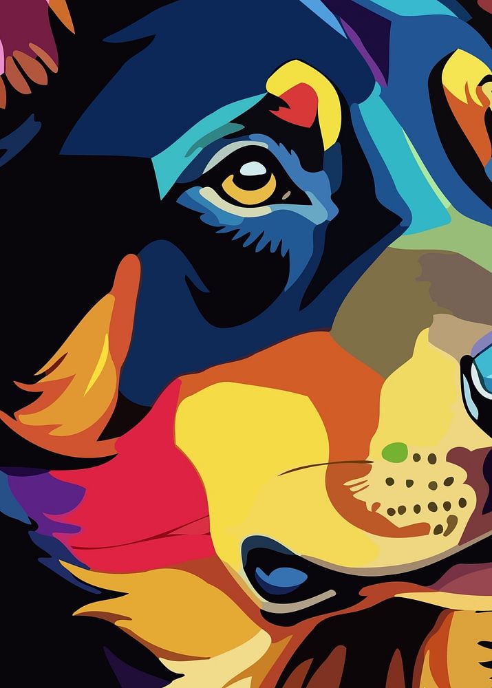 This pop art portrait transforms the Beauceron’s muscular frame and attentive stance into a bold masterpiece of electric reds, deep blues, and vibrant oranges. The breed’s piercing gaze and sleek silhouette are outlined in sharp graphic lines, blending working dog power with artistic sophistication. Perfect for homes that admire strength and loyalty with a contemporary design twist.