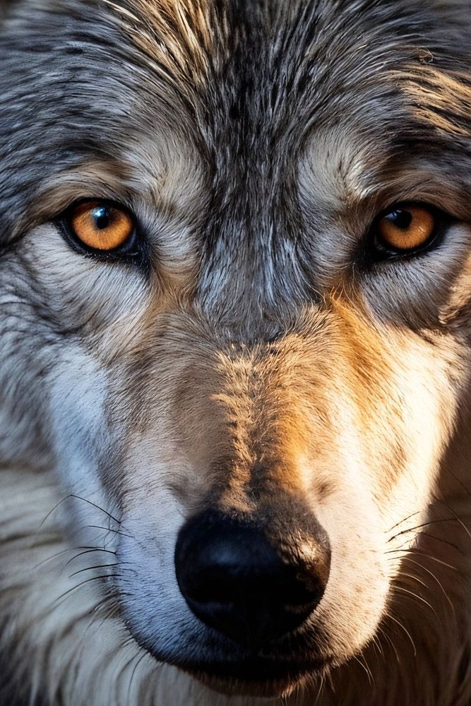 This beautiful artwork shows an impressive close-up of a wolf in stunning realism. The rich detail of its fur and the intense look of its orange eyes immediately grab attention. The warm lighting provides a nice contrast to the grey and white tones of the fur, enhancing the sense of depth and texture. This image exudes power and mystery, perfect for people who want to bring a strong, natural presence to their interiors. A symbol of freedom and independence, the wolf fits perfectly into any modern space, such as an office or bedroom. Add a touch of wild nature to your interior with this striking artwork.