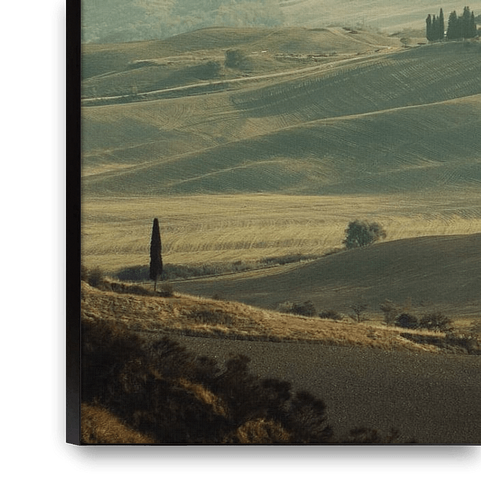 Buy this landscape artwork Beautiful hilly Tuscan countryside with secluded farmhouses by Besa Art on canvas, ArtFrame, poster and wallpaper, printed on demand in high quality.