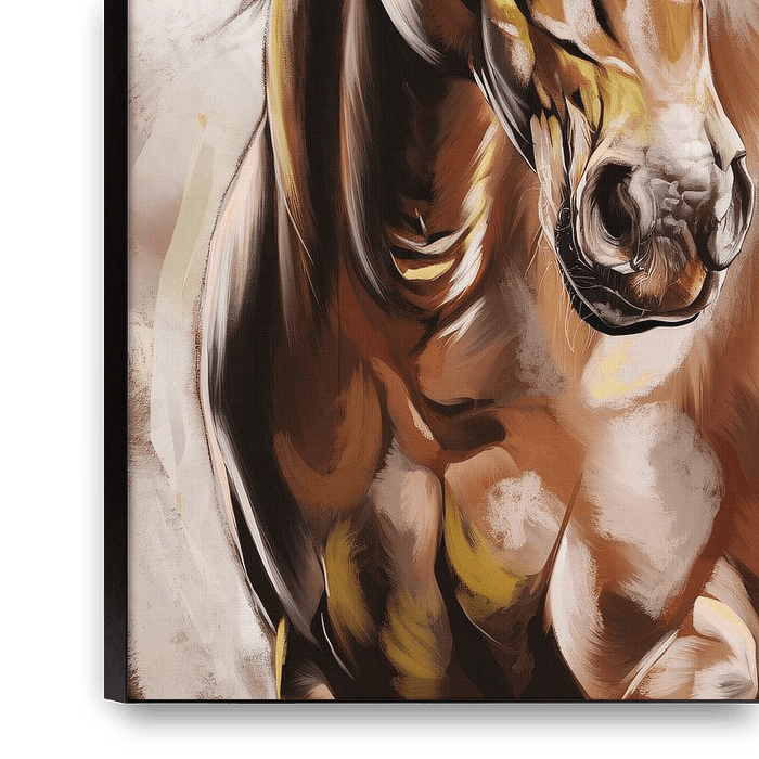 This digital artwork shows a beautiful, lifelike portrait of an elegant horse with a shiny brown coat and rich details. The expressive eyes and subtle play of light and shadow make it a dynamic and captivating piece of art. Perfect for animal lovers and art collectors looking for a modern interpretation of natural beauty. Ideal for a…