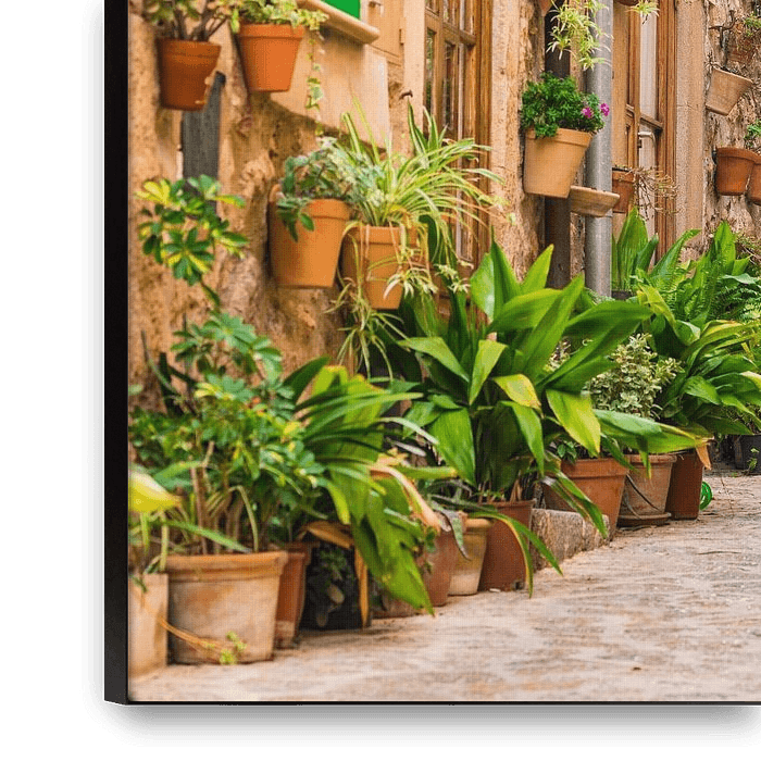 Buy this flower art Beautiful street at the mediterranean village of Valldemossa by Alex Winter on canvas, ArtFrame, poster and wallpaper, printed on demand in high quality.