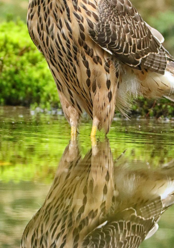 This beautiful young Goshawk was standing in the water which produced a beautiful reflection.
