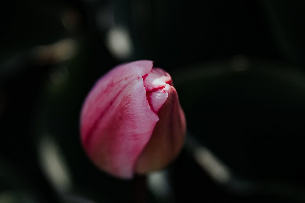 When I went to the tulip fields to capture these beautiful flowers, I didn't want just standard tulip photos. I find that this photo requires some thought as to what exactly you are looking at. In addition, the pink colors stand out nicely against the dark background. The fact that the flower is still closed shows that the warmer weather is coming. I am ready for it!