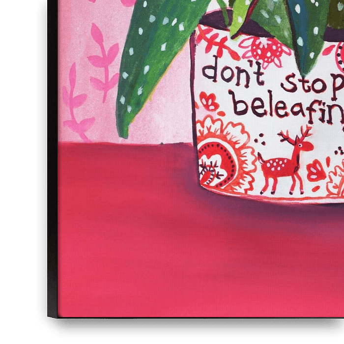 This begonia still life features the polka dot begonia, or polka dot plant. This cute little plant with dotted leaves has the Latin name Begonia Maculata. On the red and white pot of this bright pink or candy cane pink plant still life is a funny inspirational quote and reminder 'don't stop beleafing' Let it be…