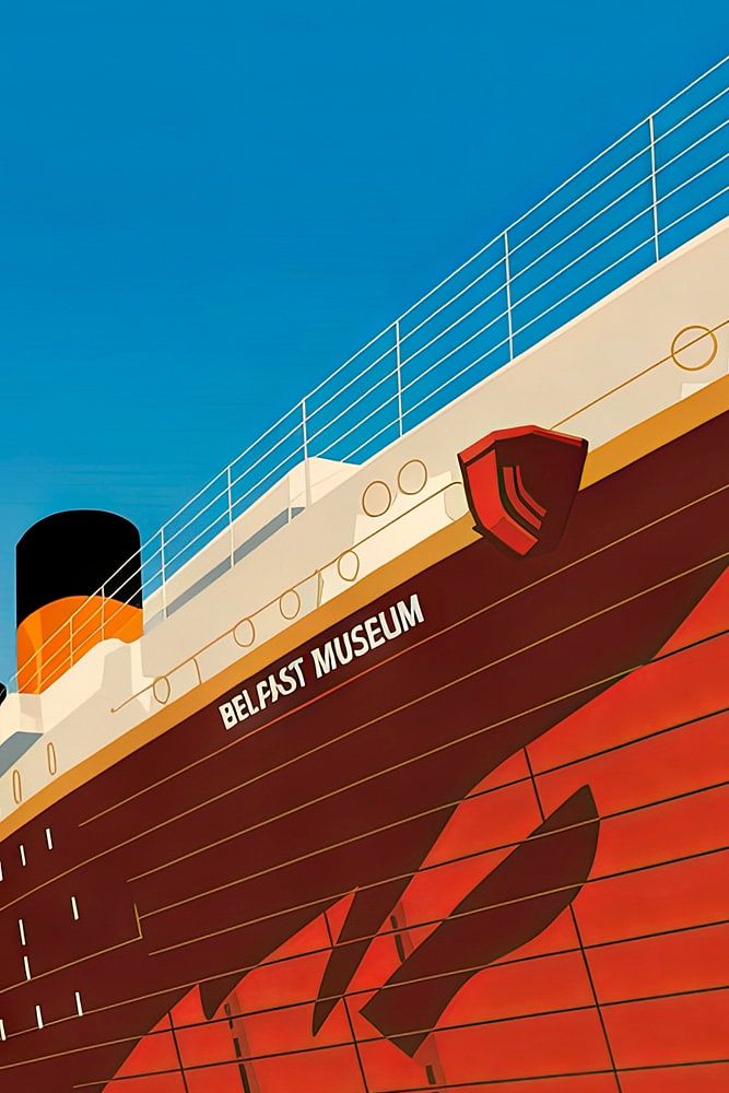 A majestic ship rises proudly from the water, its bright red façade radiating history and adventure. The gentle lines and elegant silhouette blend harmoniously with the clear sky, while the lettering "Belfast" emphasises the cultural heritage of this city. A view that awakens a longing for discovery!