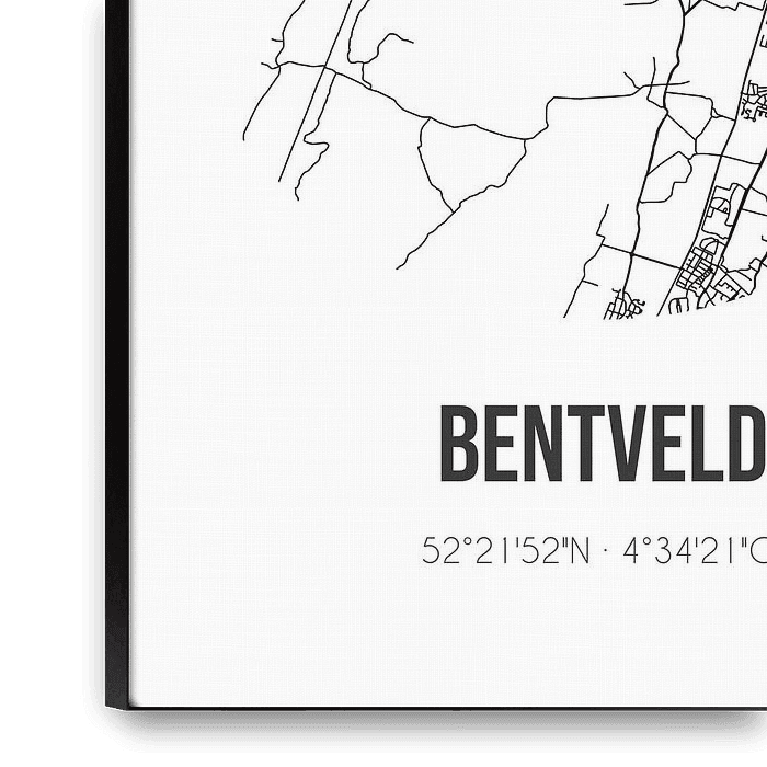 Buy this abstract artwork Bentveld (Noord-Holland) | Map | Black and White by Prints of Place on canvas, ArtFrame, poster and wallpaper, printed on demand in high quality.