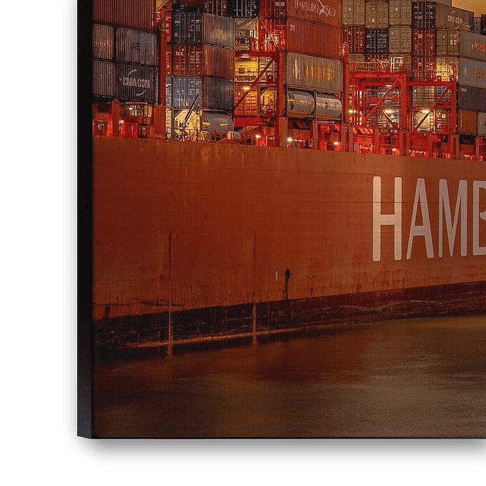 Buy the photo Between steel and sunfire - harbour poetry by Sabine Wagner on canvas, ArtFrame, poster and wallpaper, printed on demand in high quality.