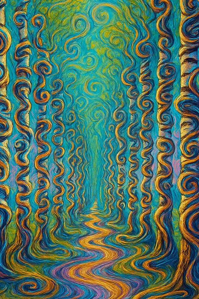"Birch path into the intermediate realm" by Karl-Heinz Lüpke