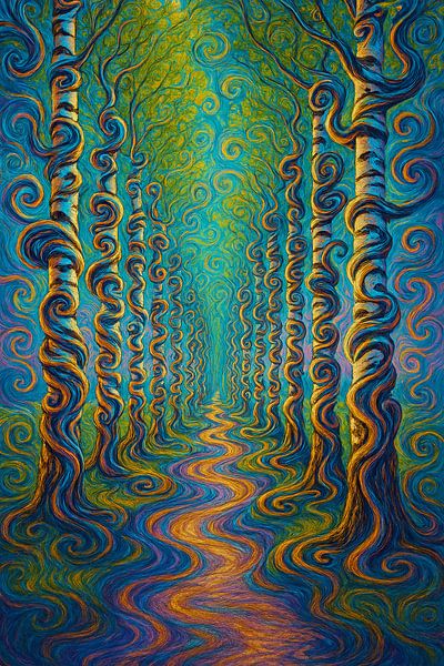 Buy this abstract artwork "Birch path into the intermediate realm" by Karl-Heinz Lüpke on canvas, ArtFrame, poster and wallpaper, printed on demand in high quality.