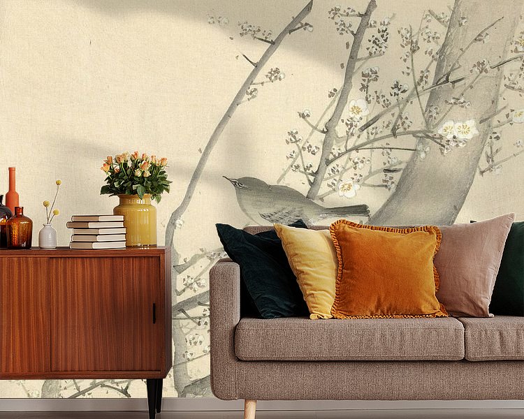 Buy Bird in tree with white blossom by Matsumura Keibun - 1892 as a reproduction on canvas, ArtFrame, poster and wallpaper, printed on demand in high quality.